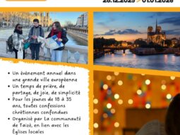 Est-ce que tu connais les Rencontres européennes de Taizé ? C’est un grand événement organisé chaque année par la communauté de Taizé, qui réunit des milliers de jeunes de 18 à 35 ans venus de toute l’Europe, et même au-delà. Chaque hiver, la rencontre se déroule dans une grande ville européenne différente, en lien avec ... Lire la suite